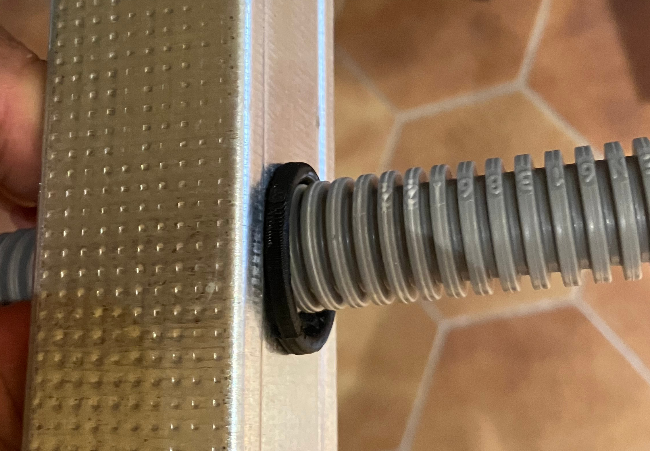 Très difficile de passer la gaine dans le montant, ça se bloque tous les 5mm. Avec cette double demi-bague, ça glisse Alice !