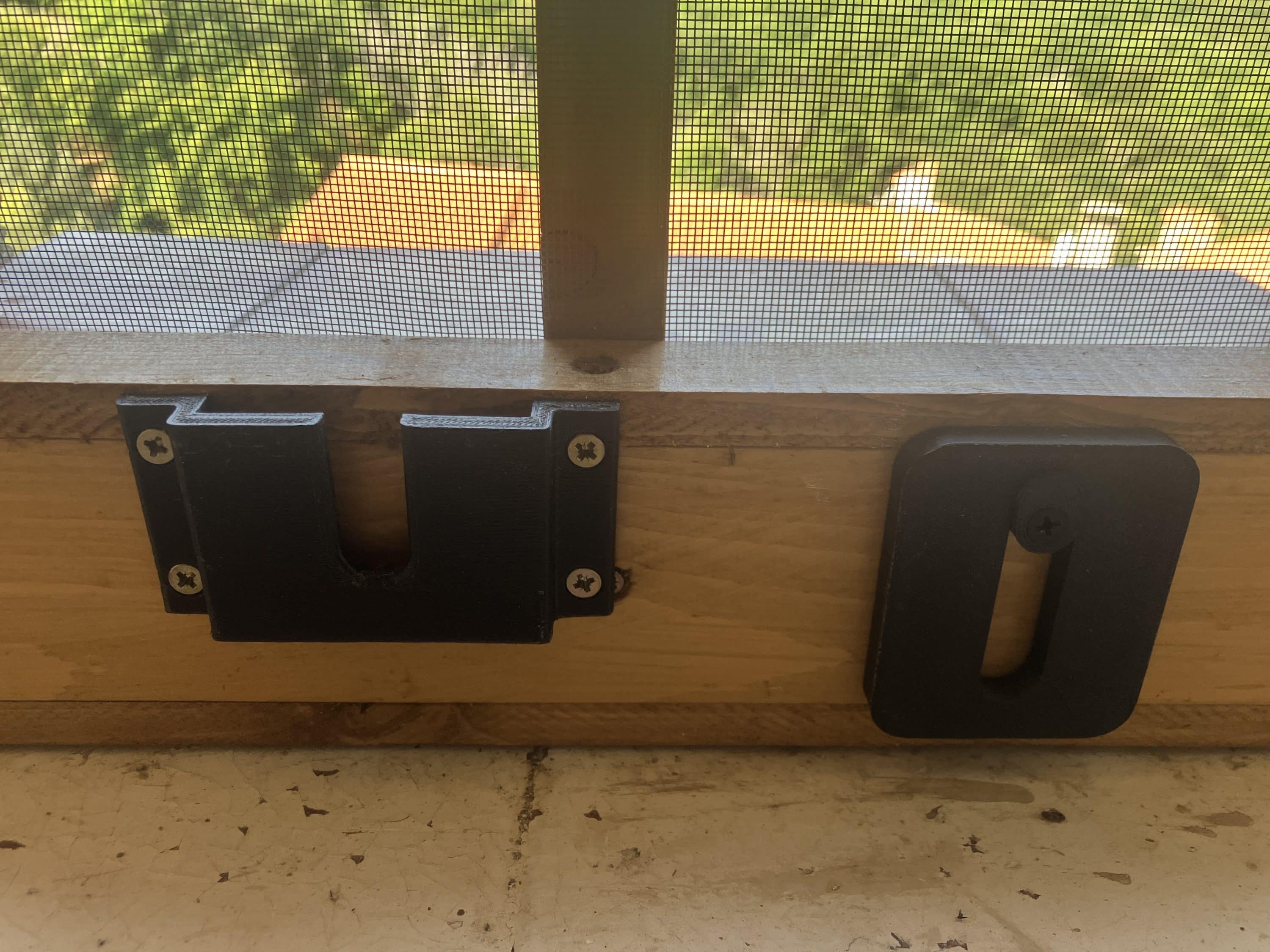 Chez nous les volets sont à l’intérieur et la moustiquaire est fixe. 4 pièces (une est cachée en haut, hors photo) permettent de maintenir les volets en place et de ne pas avoir à chercher le verrou.