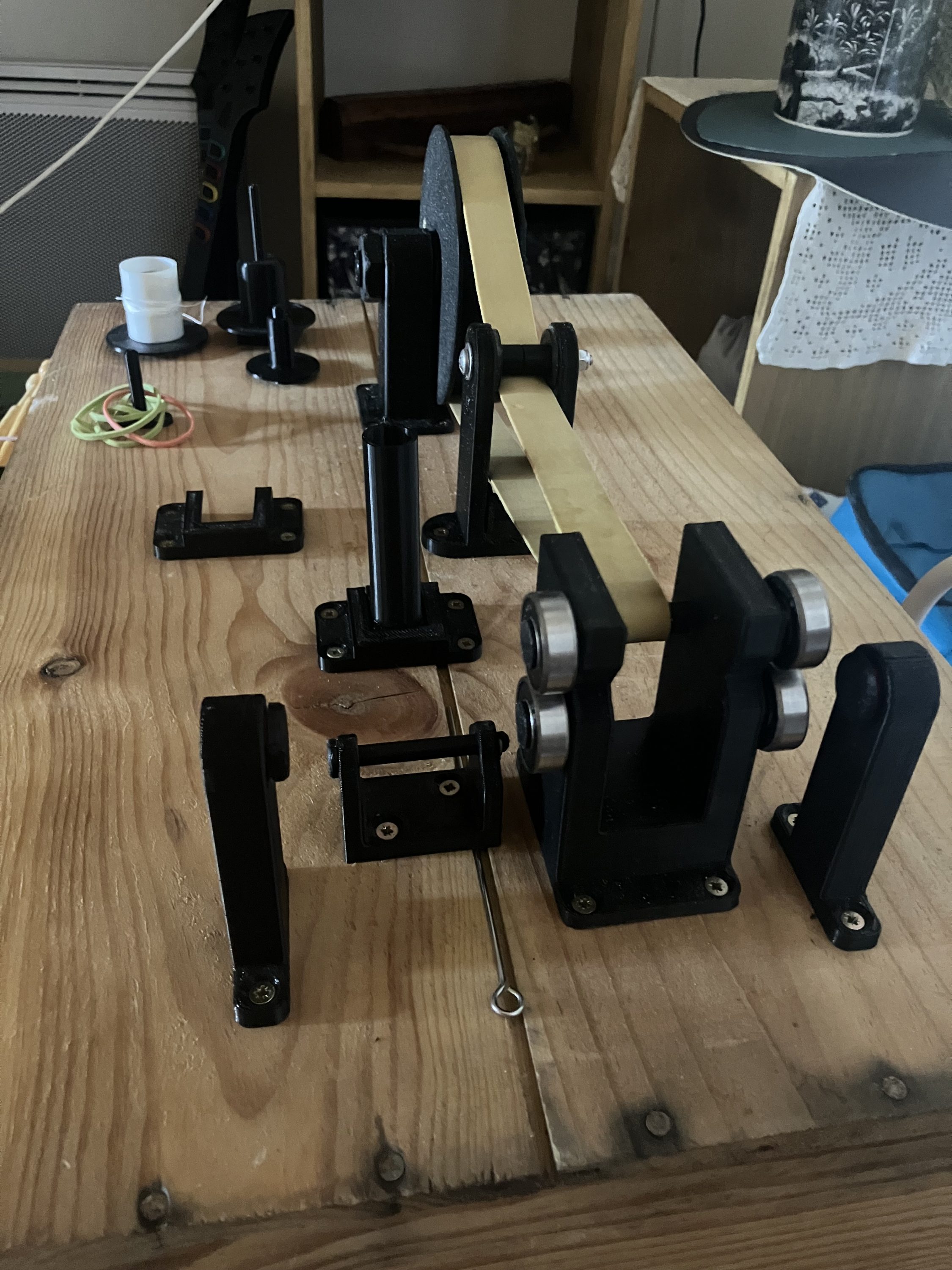 Après une V1 articulée sur 2 axes qui marchait très bien, j’ai voulu « faire mieux ». La réalisation est fonctionnelle mais j’ai quand même dû remplacer le socle inférieur par une version plus inclinée car la rotule, bien que très pratique, n’a pas un débattement énorme. Les avantages sont : Un câble moins tendu et « peut-être » un peu moins de vibrations.