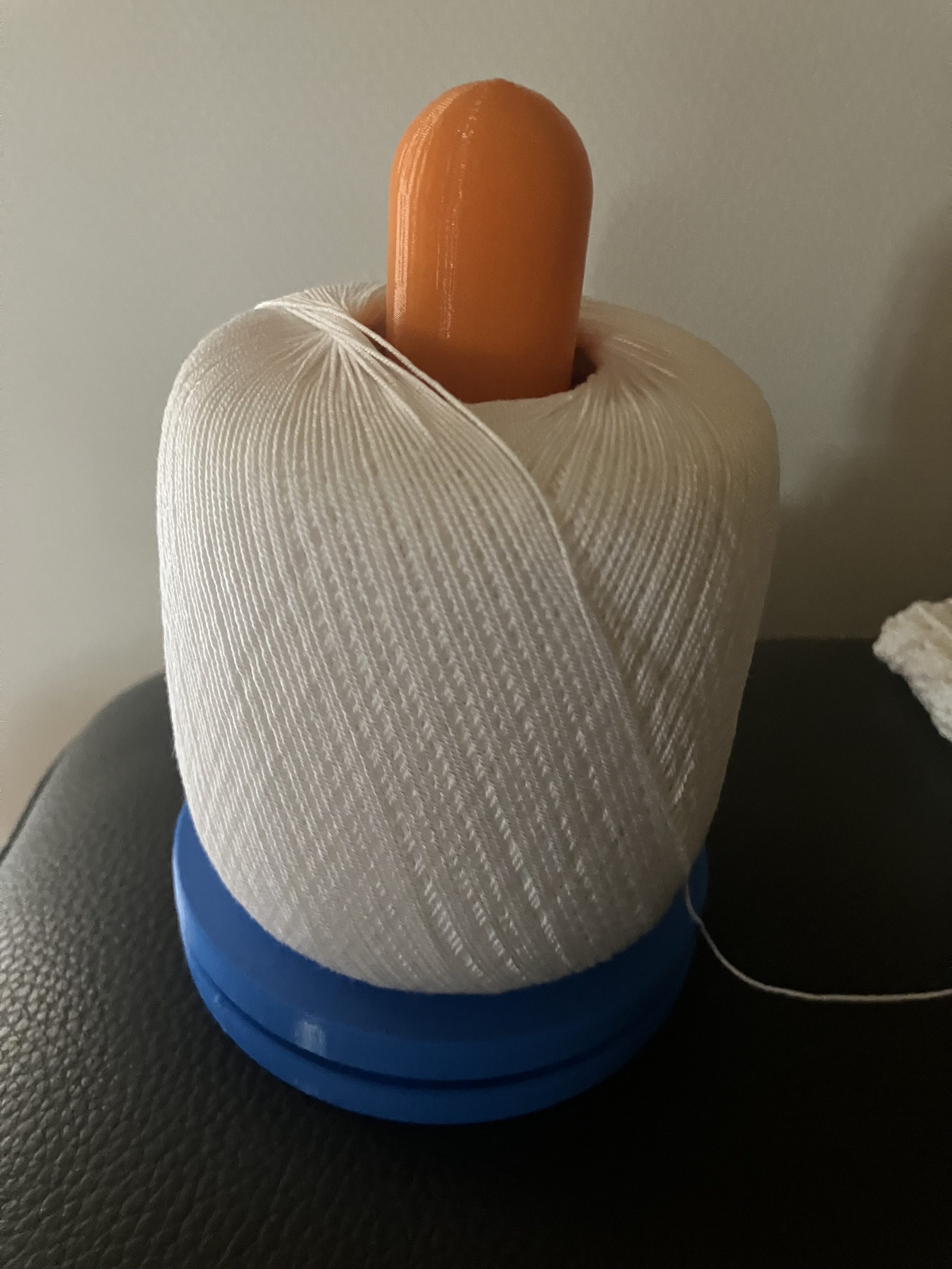 Les bobines de coton ont la fâcheuse tendance à vouloir parcourir le salon. C’est terminé, j’ai mis une dizaine de billes (vrais billes avec lesquelles Cyril jouait étant enfant) entre les deux plateaux, ça roule !