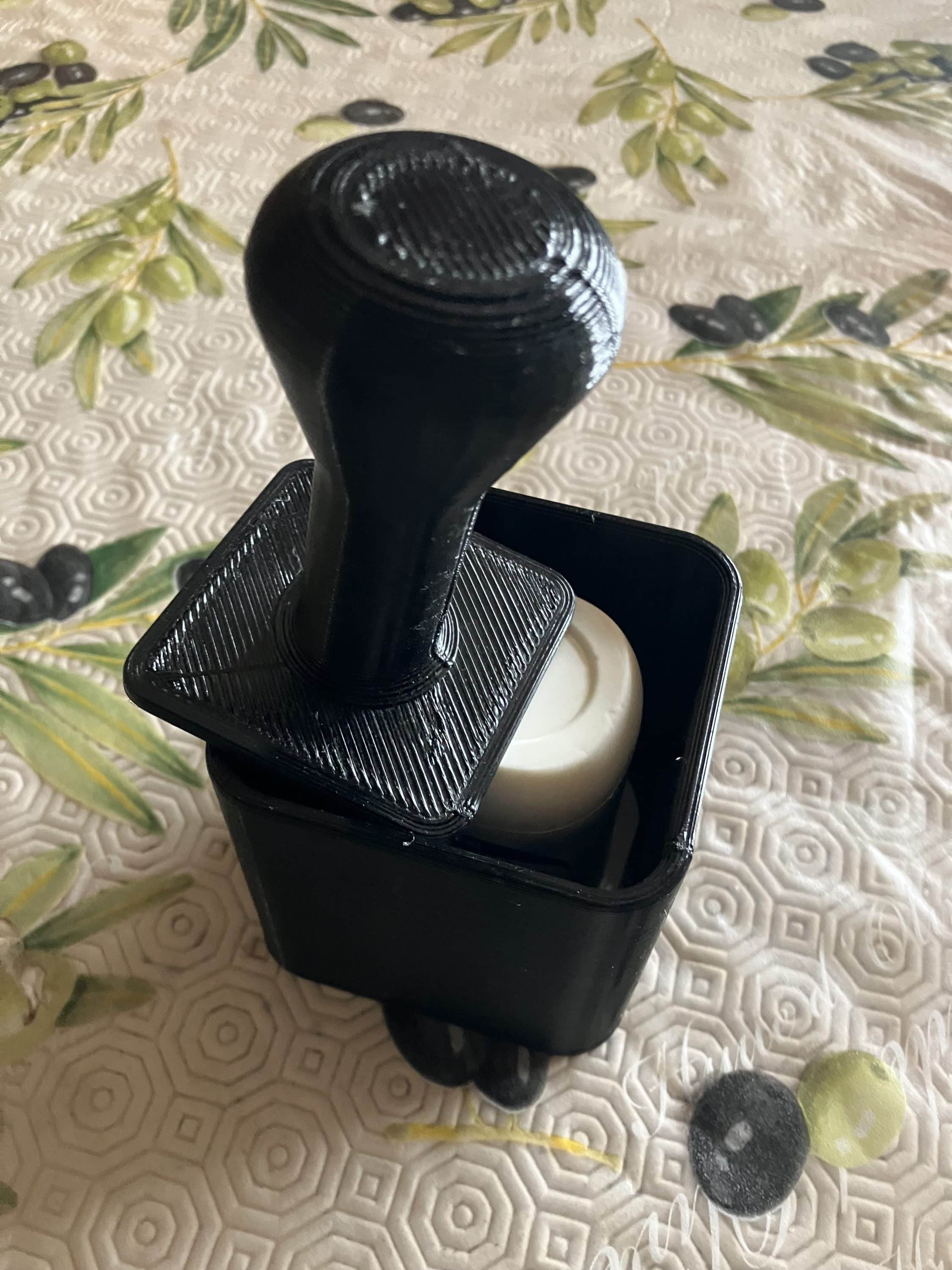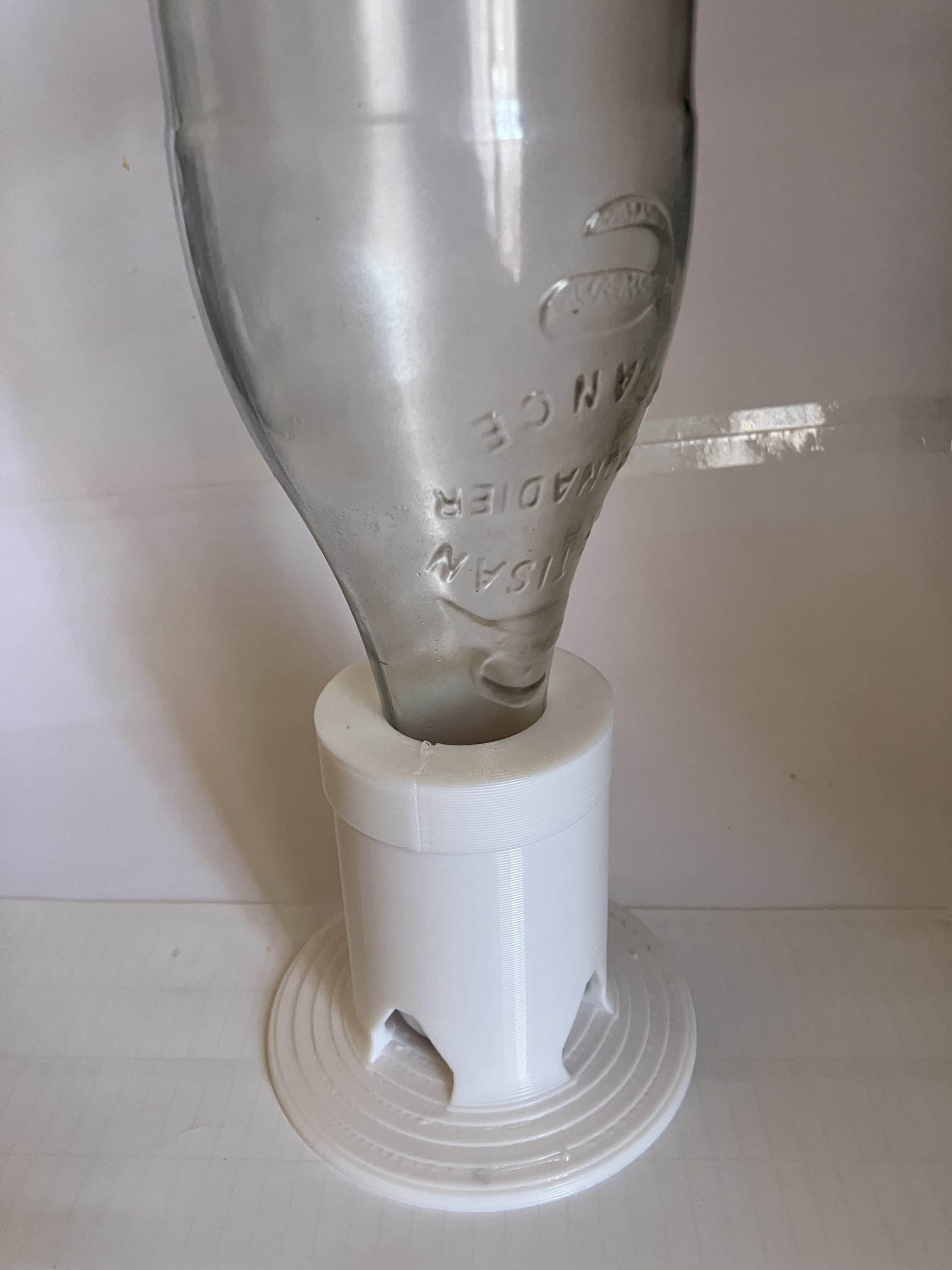 Nous préférons acheter des Bag In Box et 3 ou 5 litres et stocker nos boissons au frais dans des bouteilles en verre (Blanc, Rosé, Muscat, Rivesaltes ambré, soupe maison… J’ai imprimé un support et déjà 4 bagues pour s’adapter aux différentes bagues et profils des bouteilles.