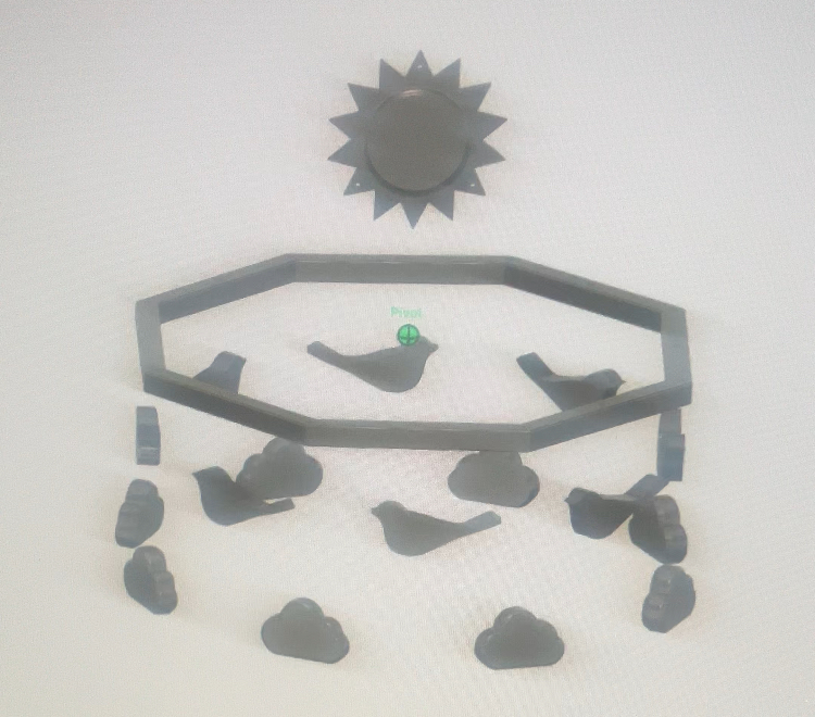 Deux mobiles pour la Noël des jumeaux nés à Calmeilles l’an dernier. Ce cadeau et pour les enfants, faire de beaux rêves mais également un kit à monter pour les parents. J’attends la photo de la réalisation pour voir les couleurs.