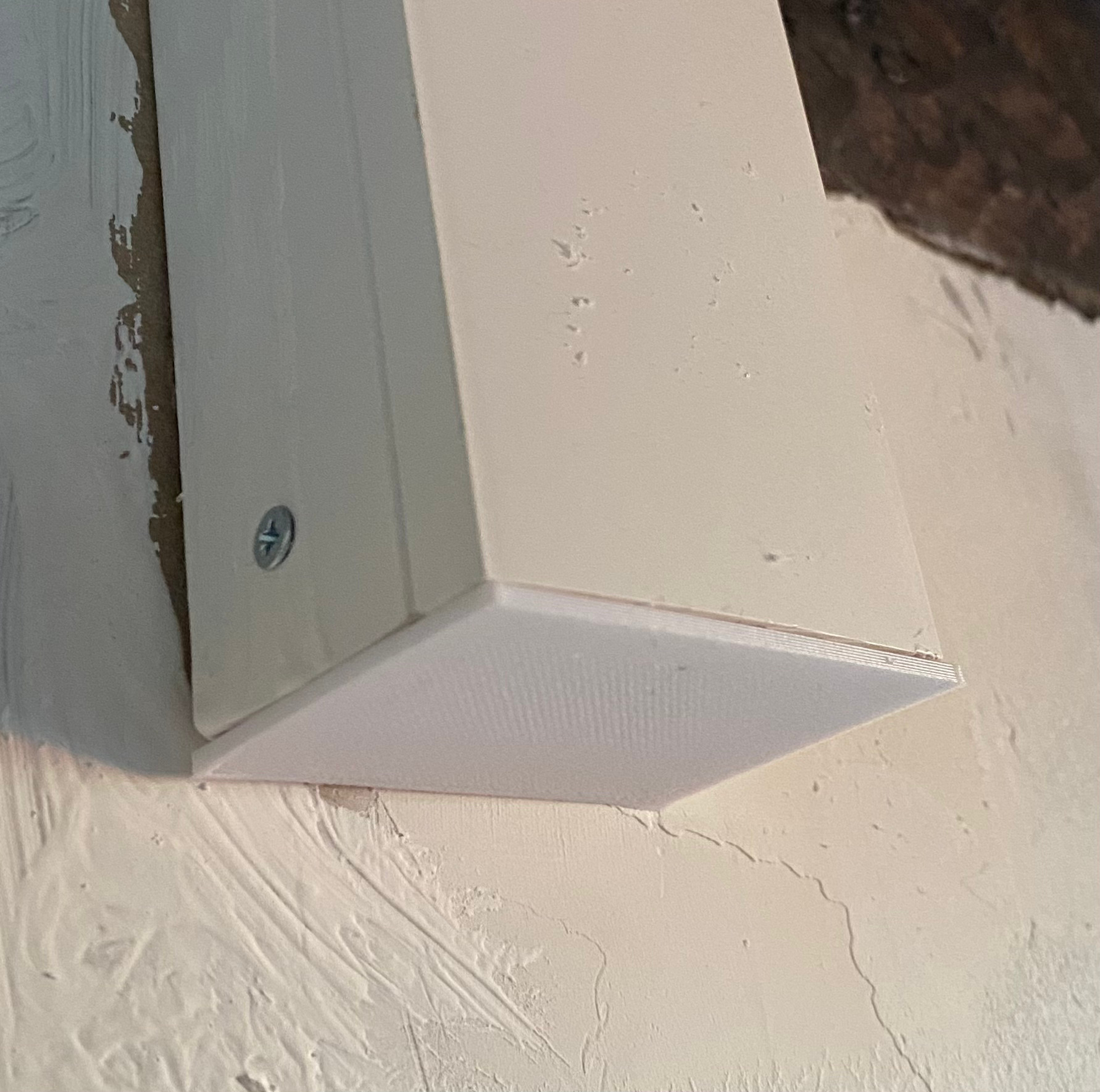 320 – BOUCHON GOULOTTE Obligé de mettre une goulotte pour passer les fils venant du faux plafond à travers le mur sous la poutre, le souci c’est qu’on voit à l’intérieur (de la goulotte) alors avec un petit cache c’est plus sympa.