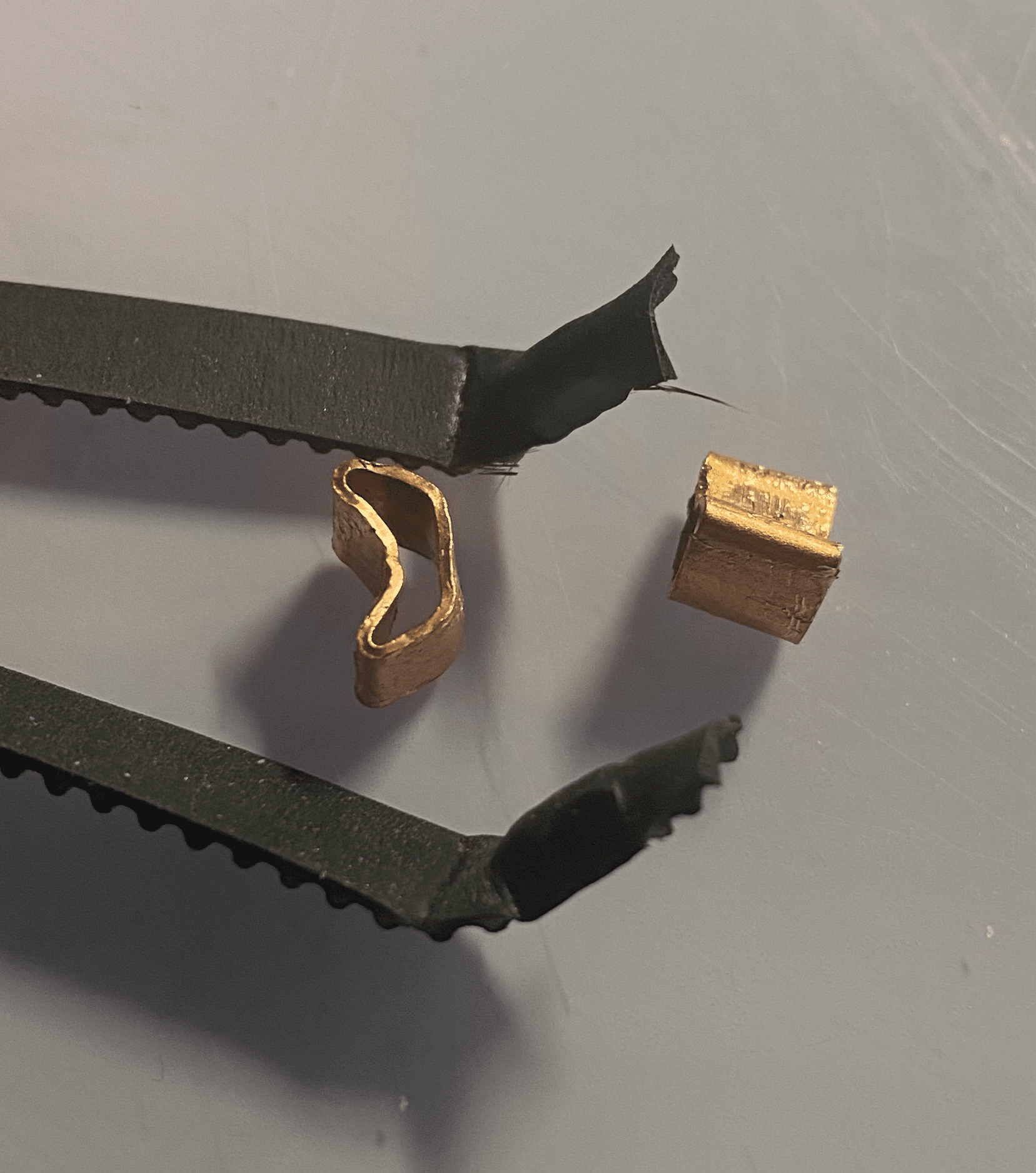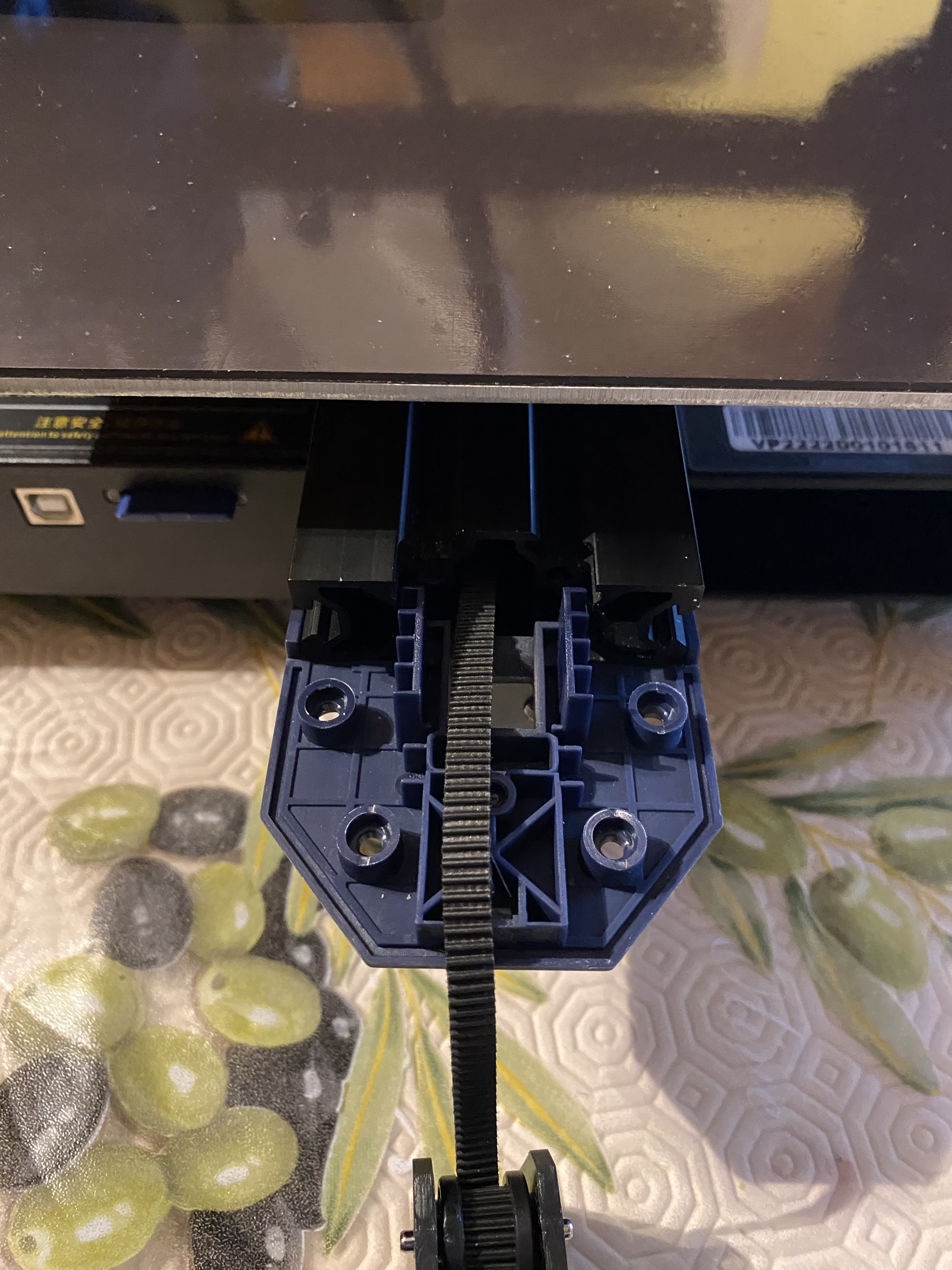 J’ai senti un « dur » lors de déplacements manuels du plateau, j’ai donc démonté pour vérifier. J’ai nettoyé les rails et les POV, vérifié les jeux. Sans la courroie tout est Nickel mais dès que je tends un peu cette dernière, j’ai parfois carrément des blocages? La courroie est morte, je dois la remplacer. Il ne faut pas le dire à Madame, je viens d’acheter une troisième machine pour pièces. Je pense que j’ai un mètre de courroie « acheté d’avance » mais il faut que je retrouve…Content « Rosco », je viens de retrouver, maintenant il faut que je vérifie que c’est la bonne. C’est une version « blindée », elle est un peu plus épaisse mais au même pas, on est sauvé. J’ai la courroie mais pas les bagues que j’ai du dé sertir et re sertir. Ce qui est clair c’est que je peux tendre, ça ne risque plus de sauter par contre il ne faudra pas abuser pour éviter de trop contraindre les axes surtout moteur. Le problème n’est pas réglé. Je me suis pas mal gratté la tête et ai fini par soupçonner la seule chose qui restait, que j’avais cité dans ma prose mais auquel je ne croyais pas. J’ai donc croisé les moteurs (la chance d’avoir 2 imprimantes) et Bingo, le problème, j’ai trouvé comme dirait Yoda. Dommage qu’Anycubic n’ai pas l’esprit développement durable et préfère jouer la carte du jetable et renouvellement technologique. Du coup ça me retire le remords de l’achat de la troisième machine qui viendra conforter le fonctionnement de 2 machines et d’une pour pièces. Si je pouvais commander une courroie et un moteur j’en aurais pour 52€ + le port, une 1/2 machine est déjà amortie.